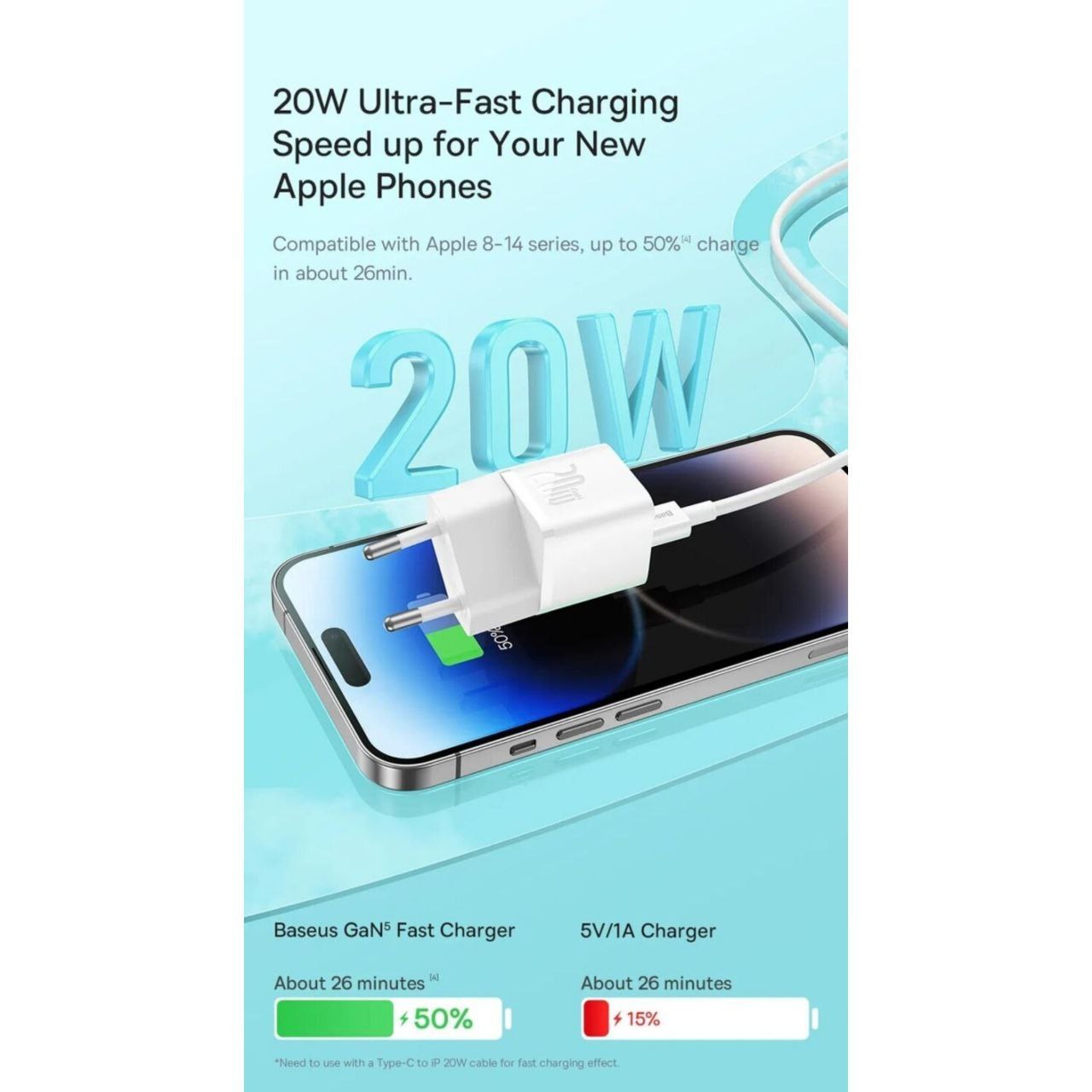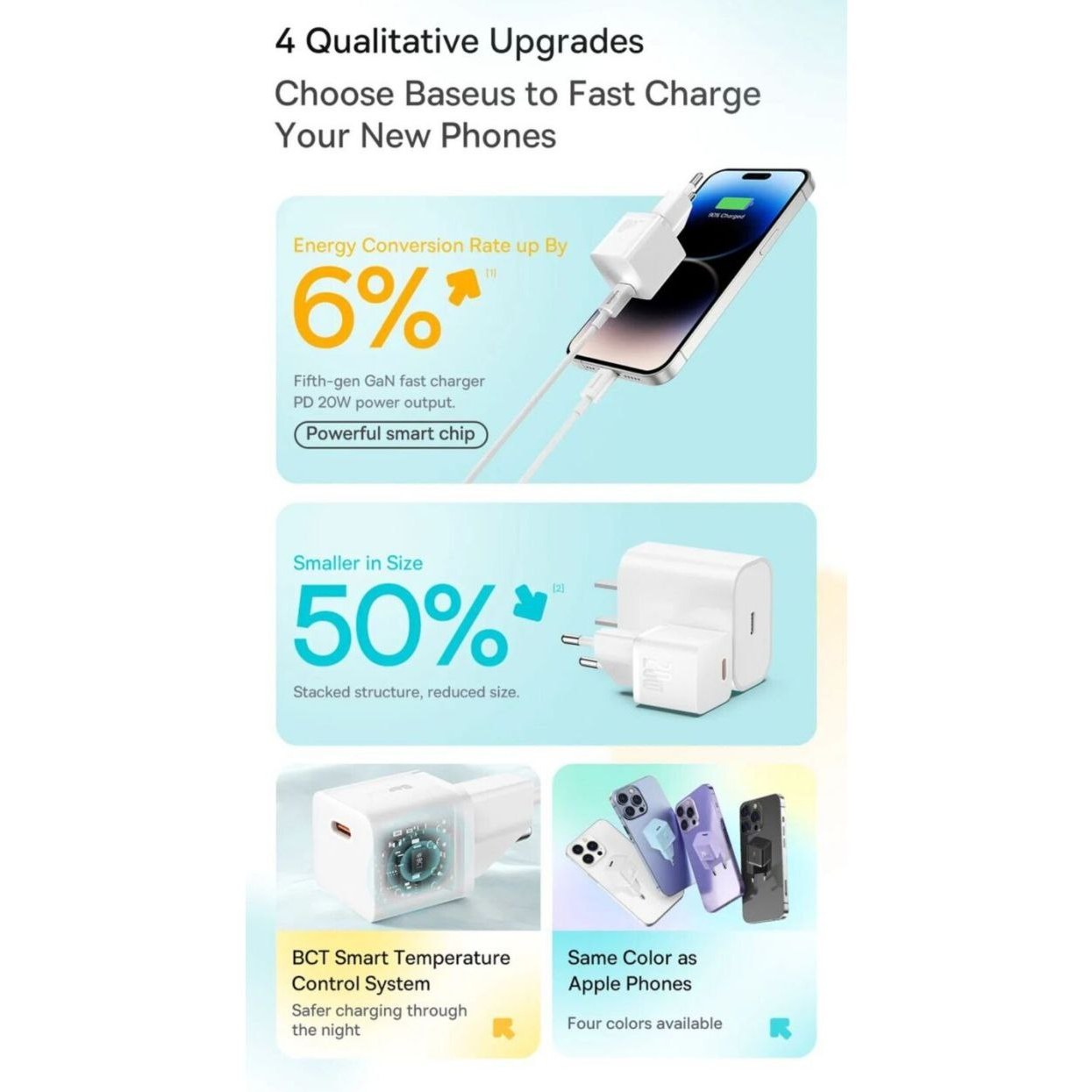 شارژر دیواری باسئوس مدل CCGN050101 توان ۲۰ وات
